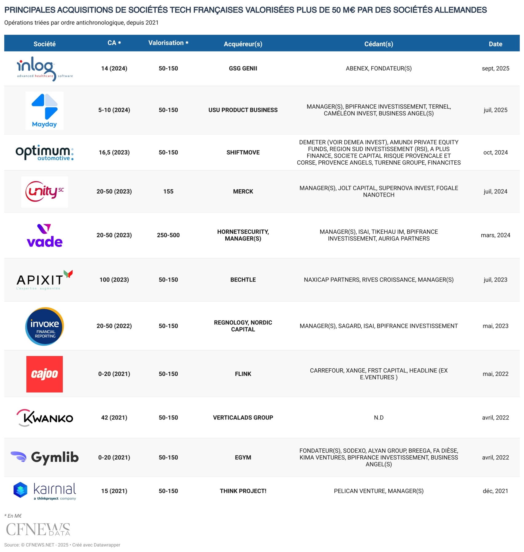 Mayday capte un appel entrant venu d'Allemagne. L'éditeur d'un logiciel Saas facilitant le travail de recherche des services clients, en collectant, gérant et diffusant de manière ciblée les informations internes des entreprises aux salariés et aux systèmes internes d'intelligence artificielle, rejoint USU Product Business. L'acquéreur allemand, fournisseur de solutions de gestion informatique, est contrôlé depuis un peu plus d'un an par le fonds américain Thoma Bravo, suite à un détourage des activités du groupe coté USU Software. Il remporte un processus de cession orchestré depuis le premier trimestre par la banque d'affaires Clipperton et prend une participation majoritaire dans la société francilienne. Depuis son amorçage d'1,6 M€ il y a quatre ans, la cible était soutenue par Bpifrance Investissement, Ternel, des business angels dont Alexandre Fretti (Malt) et le family office de François Simon (ex-Crédit Agricole), Caméléon Invest. Les fondateurs Damien Popote, Hugo Martinez et Benjamin Karila restent opérationnels.