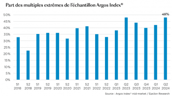 Le multiple médian d’acquisition des PME et ETI de la zone euro mesuré par l'Argos Index s’établit au second trimestre à...