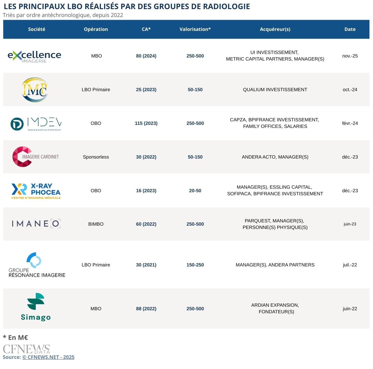 LES PRINCIPAUX LBO RÉALISÉS PAR DES GROUPES DE RADIOLOGIE. ©CFNEWS.net - 2025