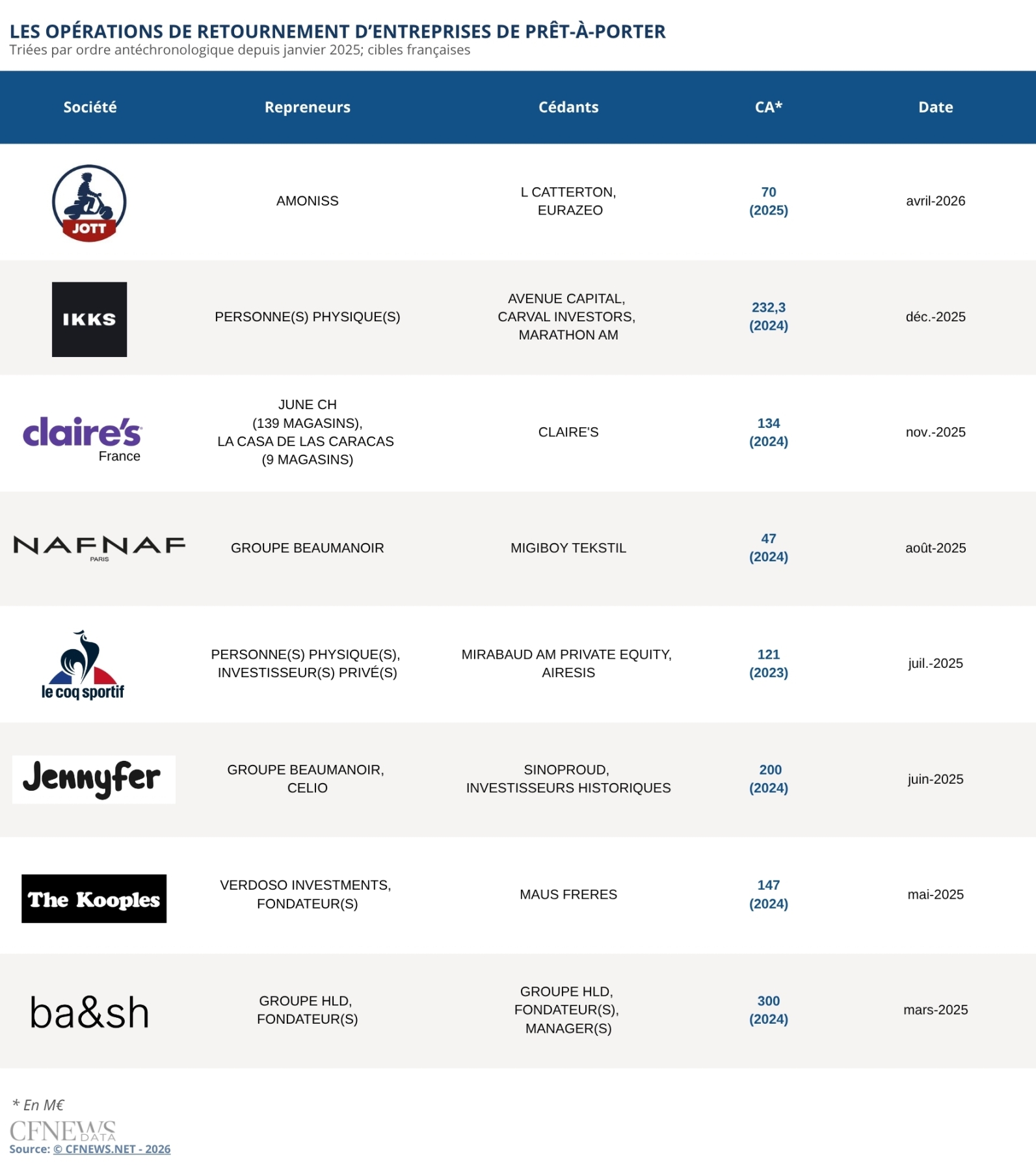 LES OPÉRATIONS DE RETOURNEMENT D’ENTREPRISES DE PRÊT-À-PORTER ©CFNEWS.net - 2026