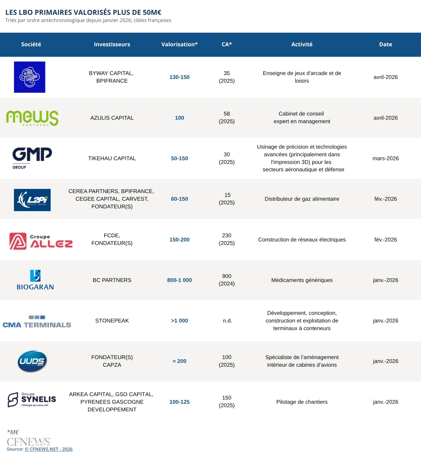 LES LBO PRIMAIRES VALORISÉS PLUS DE 50M€ - 2026