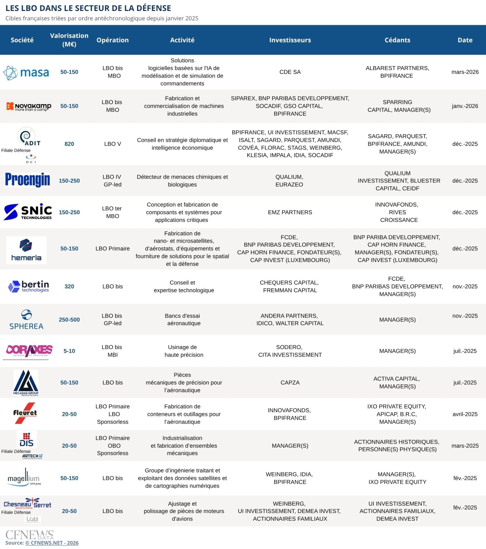 MASA change de commandement. L’entreprise parisienne d’édition de logiciels de simulation d’entraînement pour les armées et la sécurité civile est acquise par Nicolas Walewski, via son family office luxembourgeois CDE SA. Descendant de Napoléon Bonaparte et co-fondateur d’Alken AM, l’homme d’affaires enrichit ainsi son portefeuille de participations dans l’univers de la défense, comprenant notamment l’armurier allemand Heckler & Koch. Il valoriserait MASA entre 60 M€ et 80 M€, selon nos informations. Il s’empare ici d’une société basée à Paris forte d’environ 15 M€ de chiffre d’affaires pour un Ebitda qui serait compris entre 6 M€ et 7 M€. Celle-ci était jusque-là détenue par Albarest Partners, qui avait mené son spin-off de la holding industrielle Talis en 2022. L’investisseur lyonnais prenait alors le contrôle d’une entreprise affichant 7 M€ de revenus pour quelque 2 M€ d’Ebitda, sur la base d’une valorisation de 15 M€ à 20 M€. Il s’associait à l’époque à Definvest, géré par Bpifrance, et au management emmené par Marc de Fritsch.